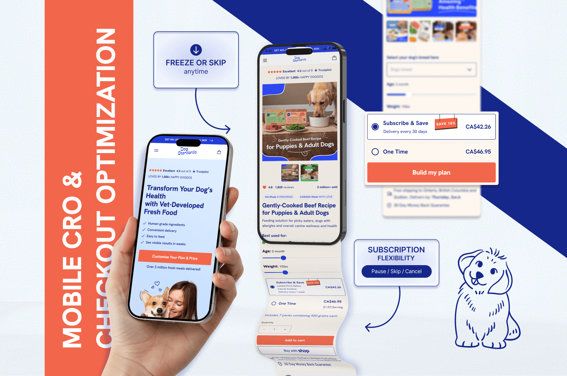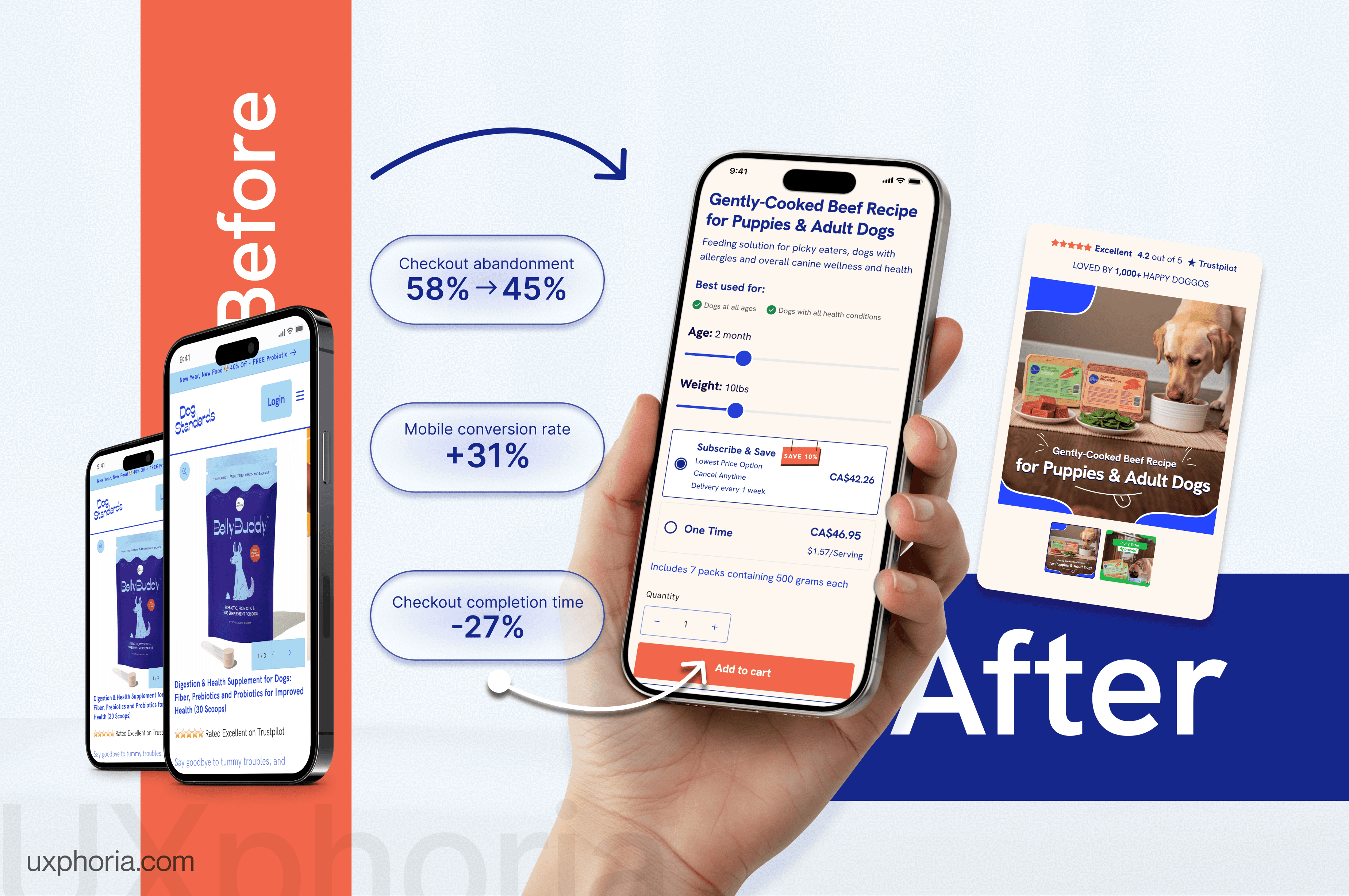 Both. We redesign key screens using CRO research so improvements are grounded in buyer behavior.