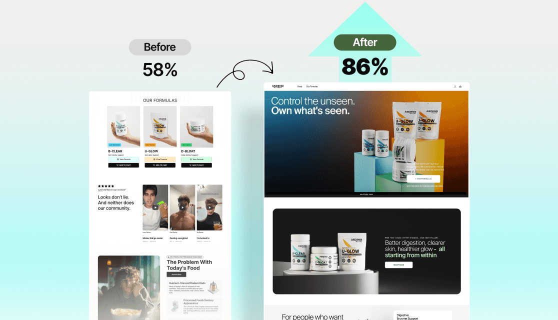Lifted checkout completion with faster UX and cleaner steps.