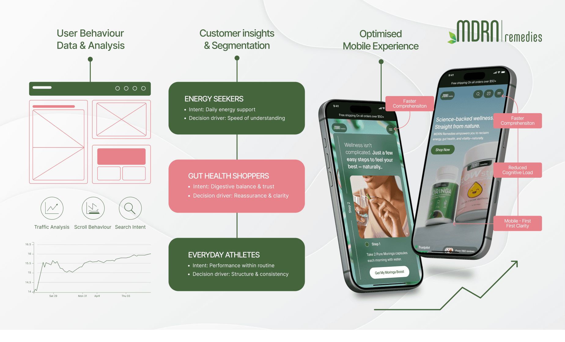 This phase revealed how different customer segments think, what confuses them, and which details they need before making a decision — giving MDRN Remedies a foundation shaped around real buying behaviour, not assumptions, forming a crucial step for any CRO enhancements